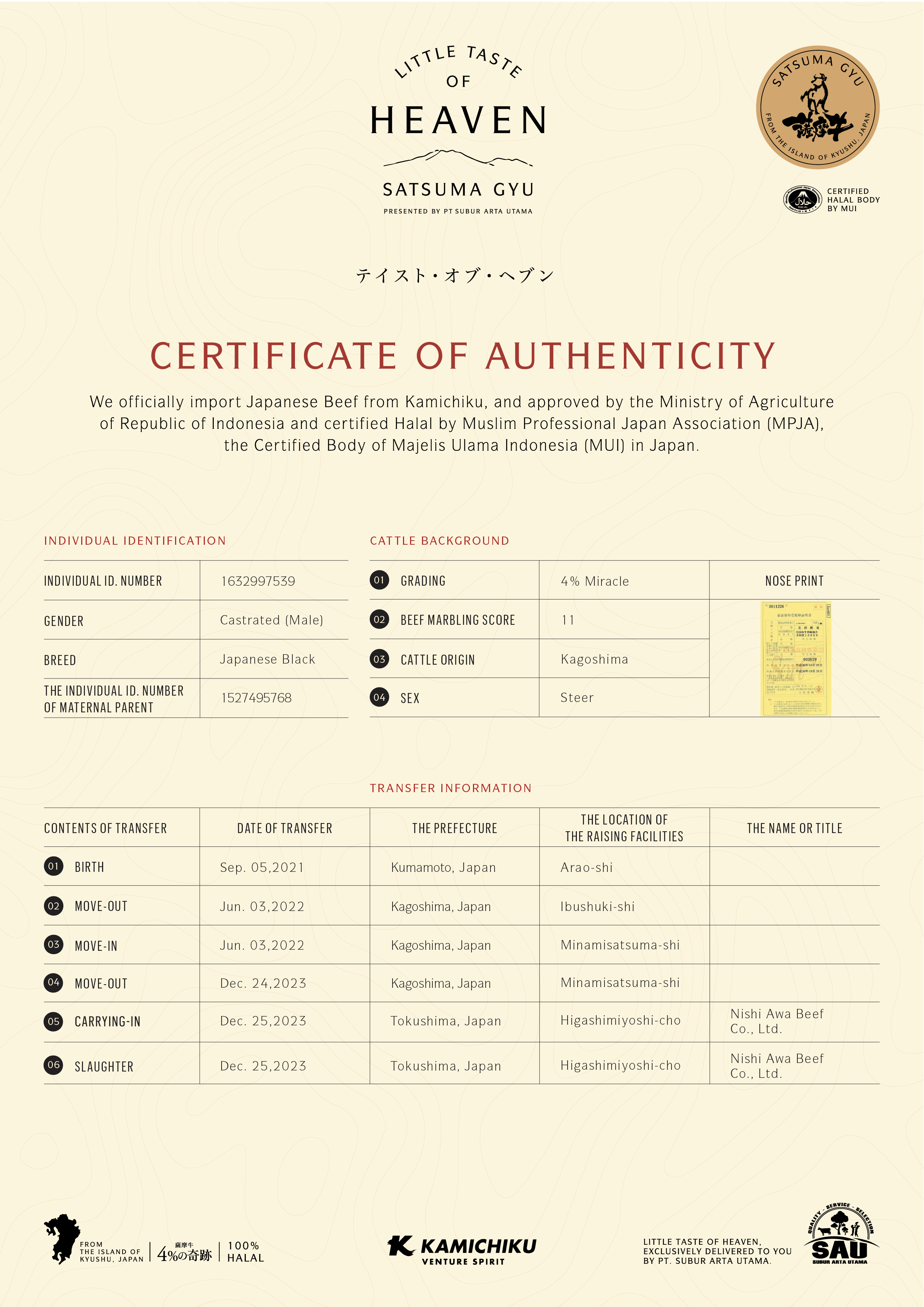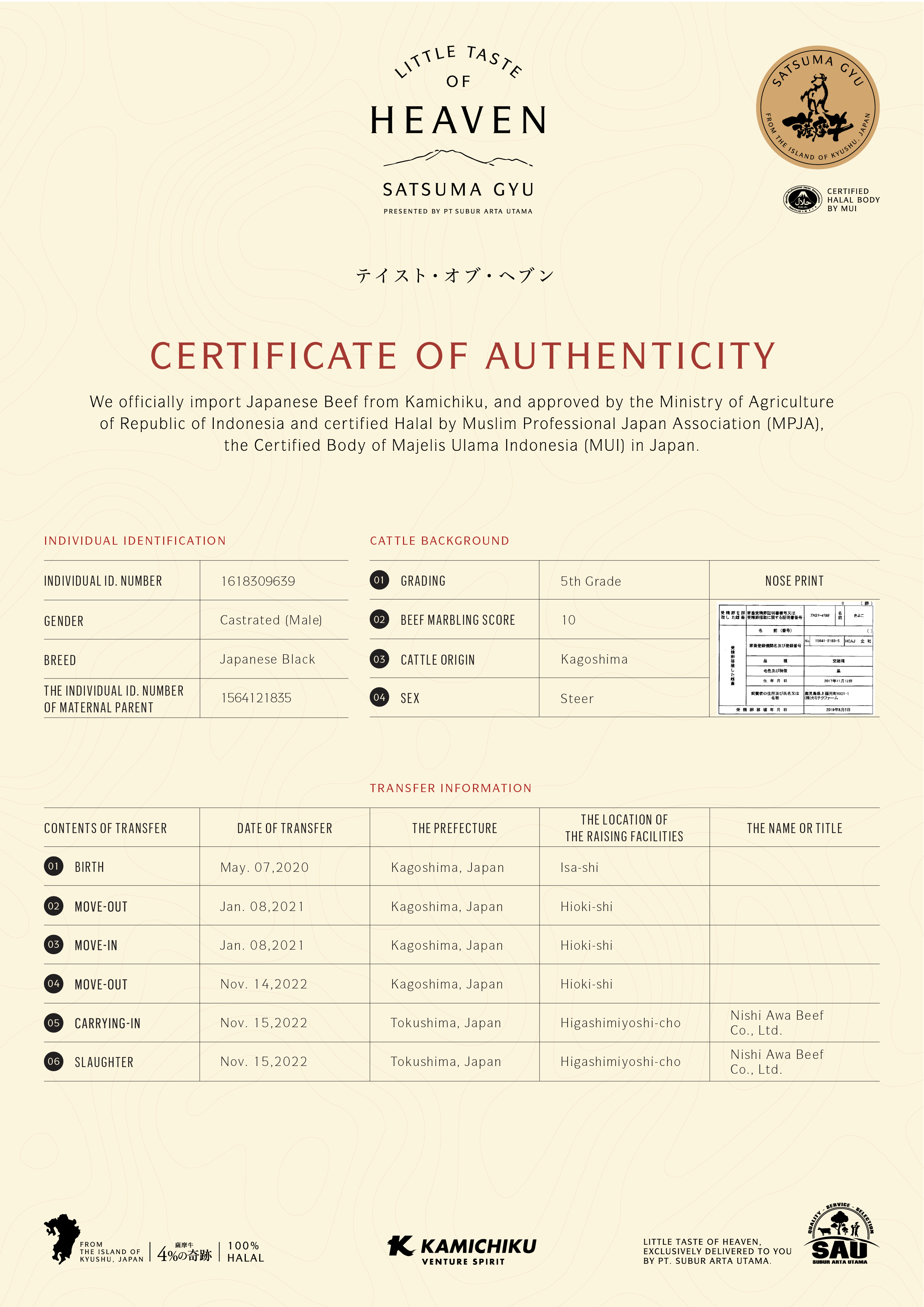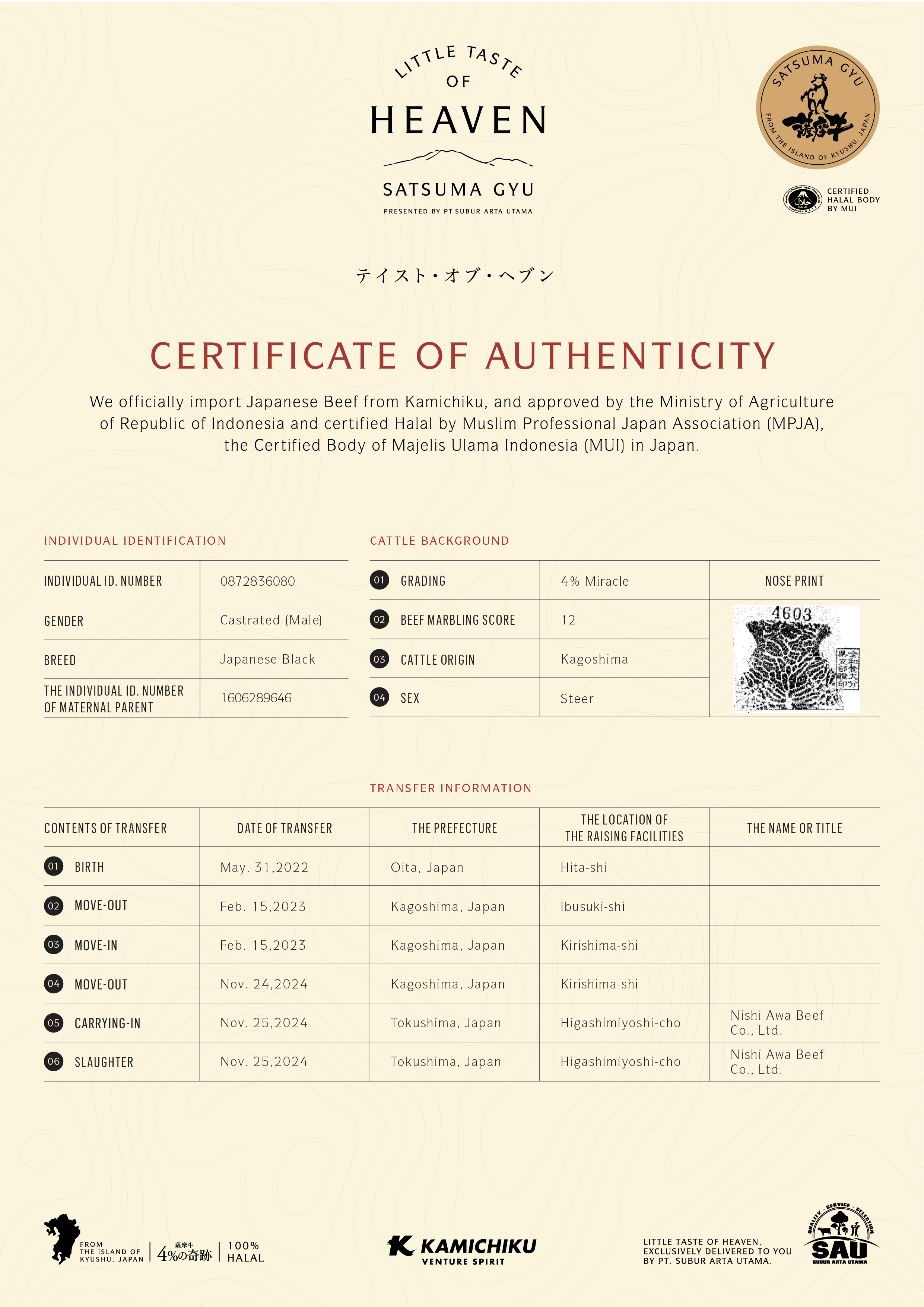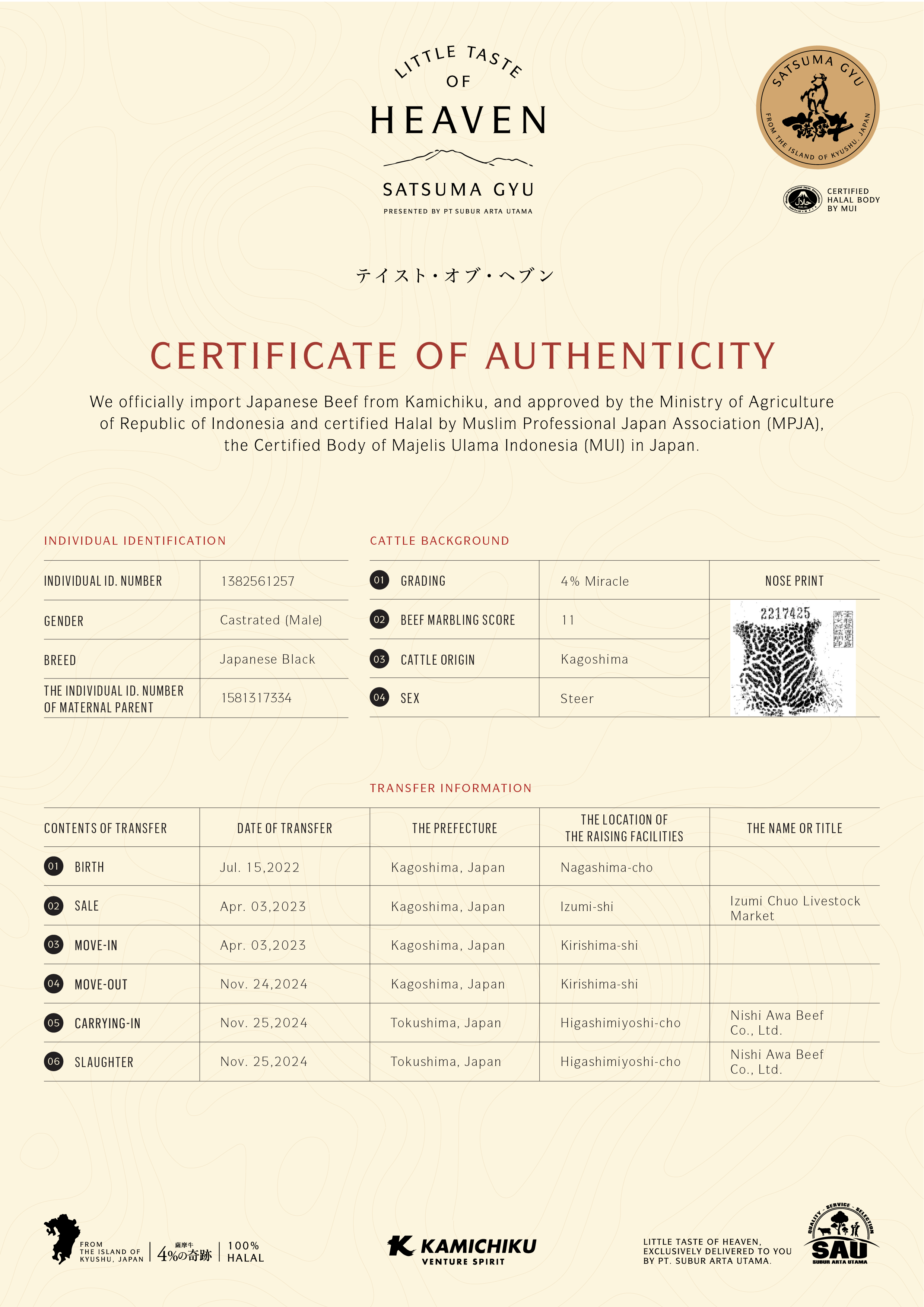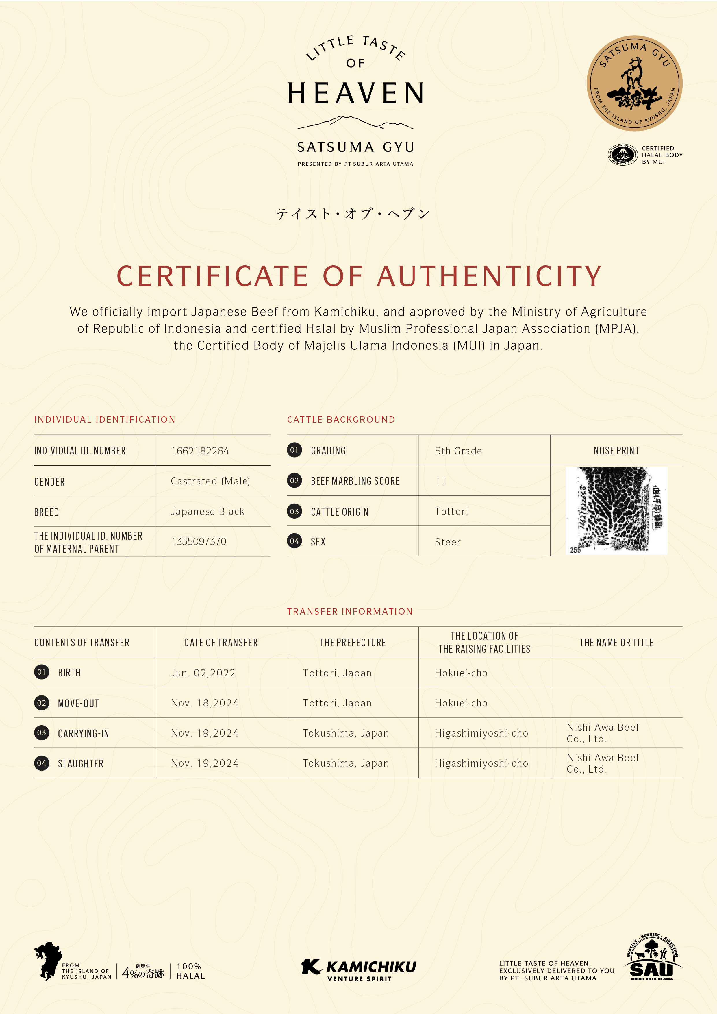 YOUR WAGYU IS REGISTERED AND CERTIFIED.