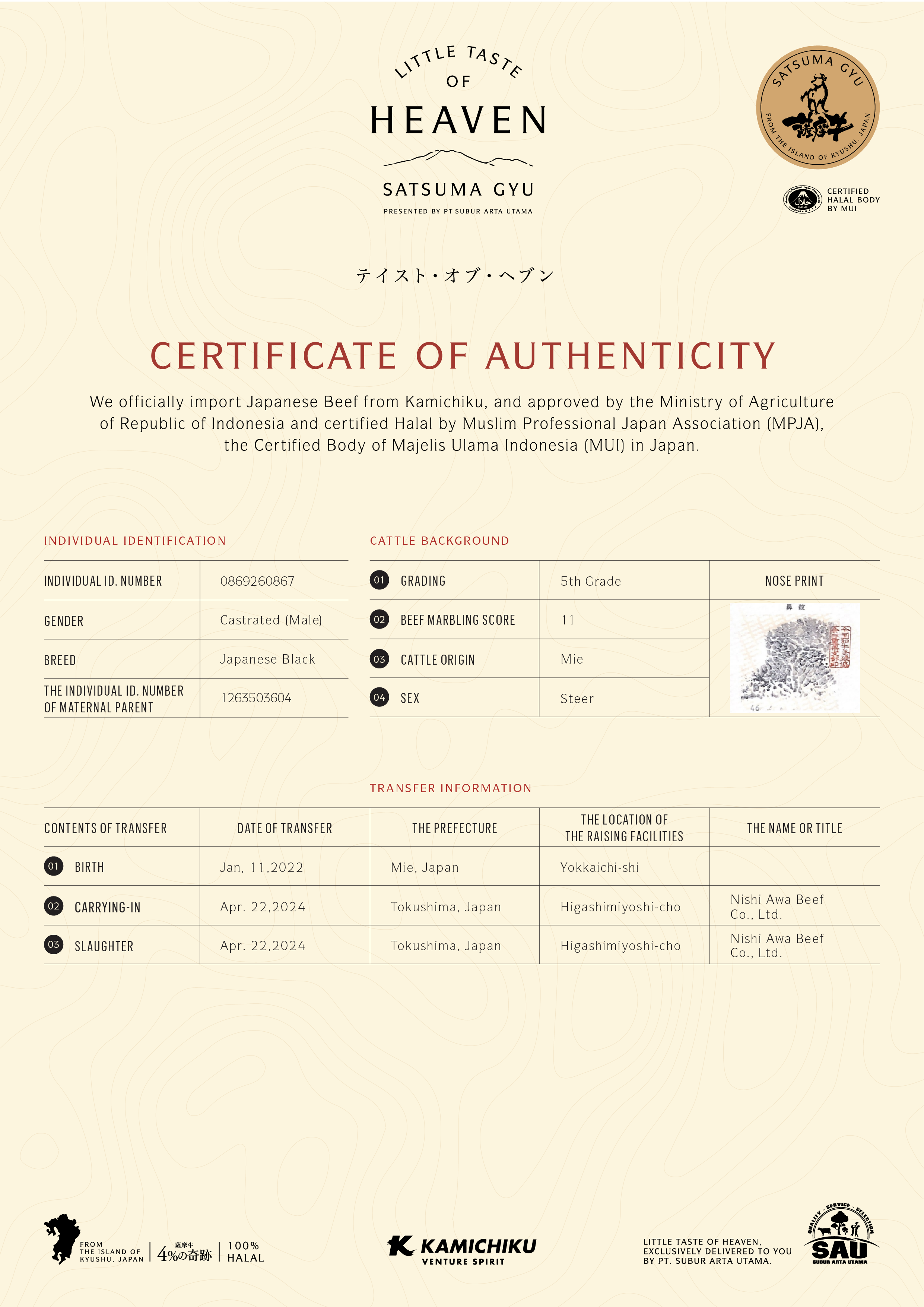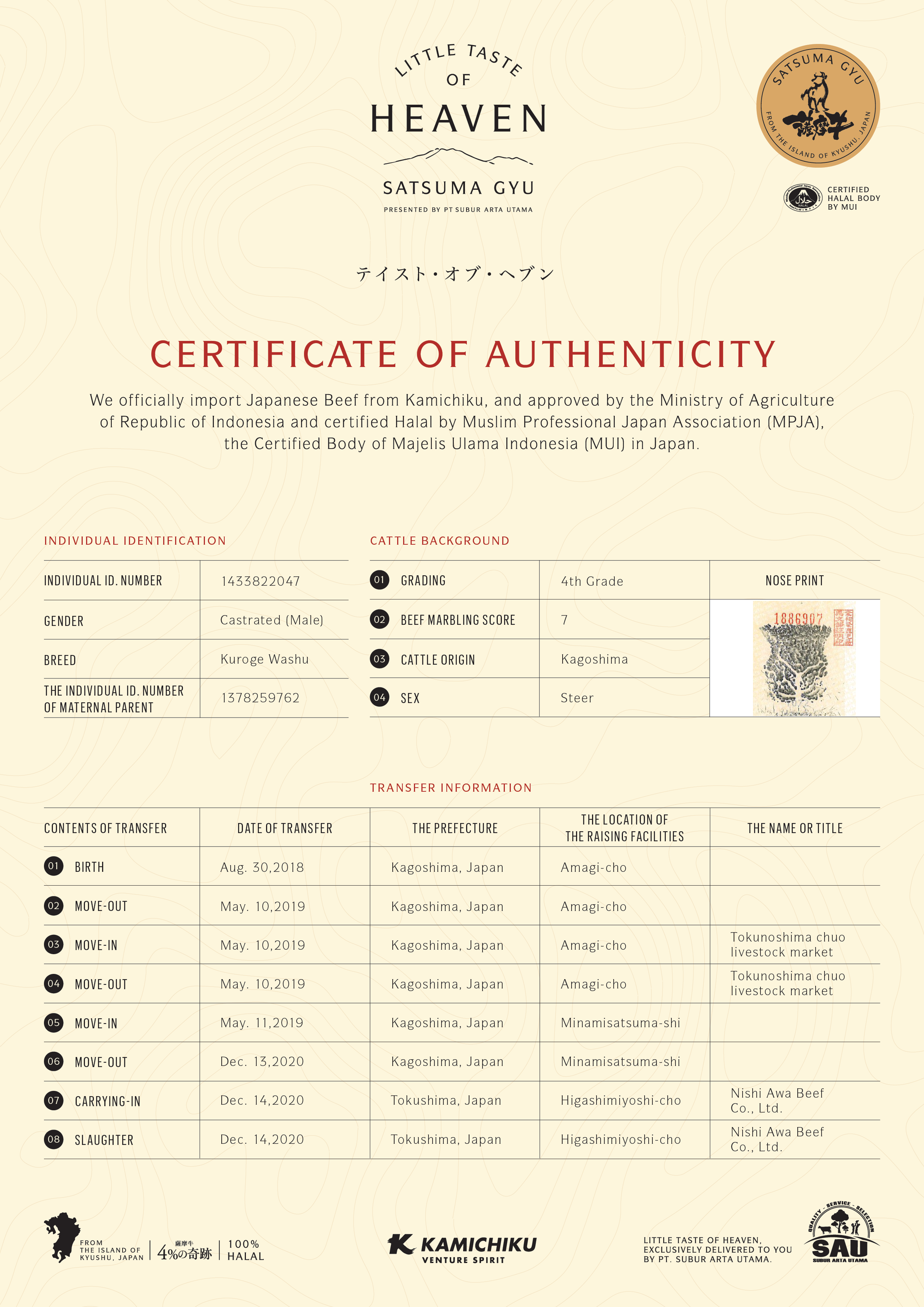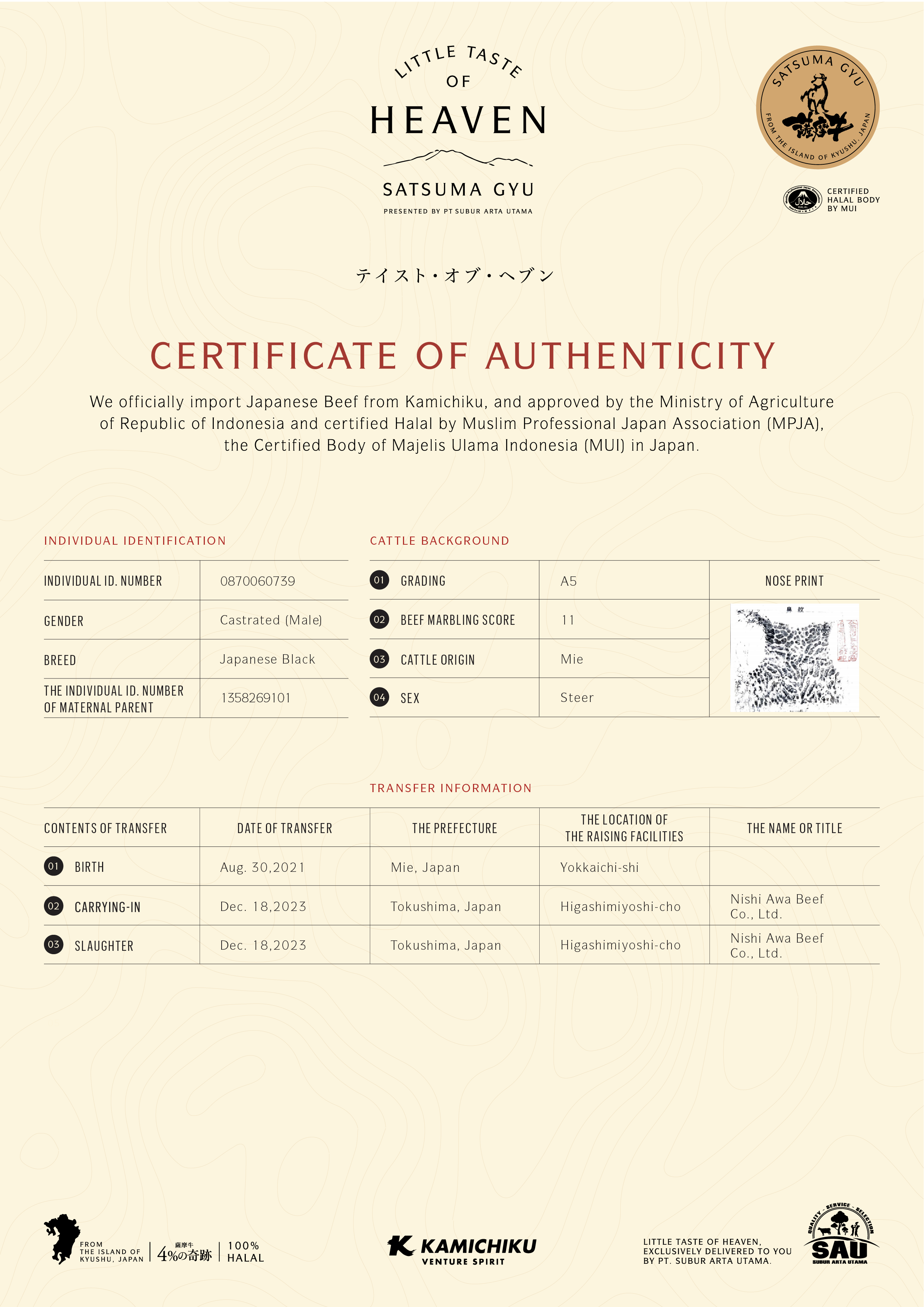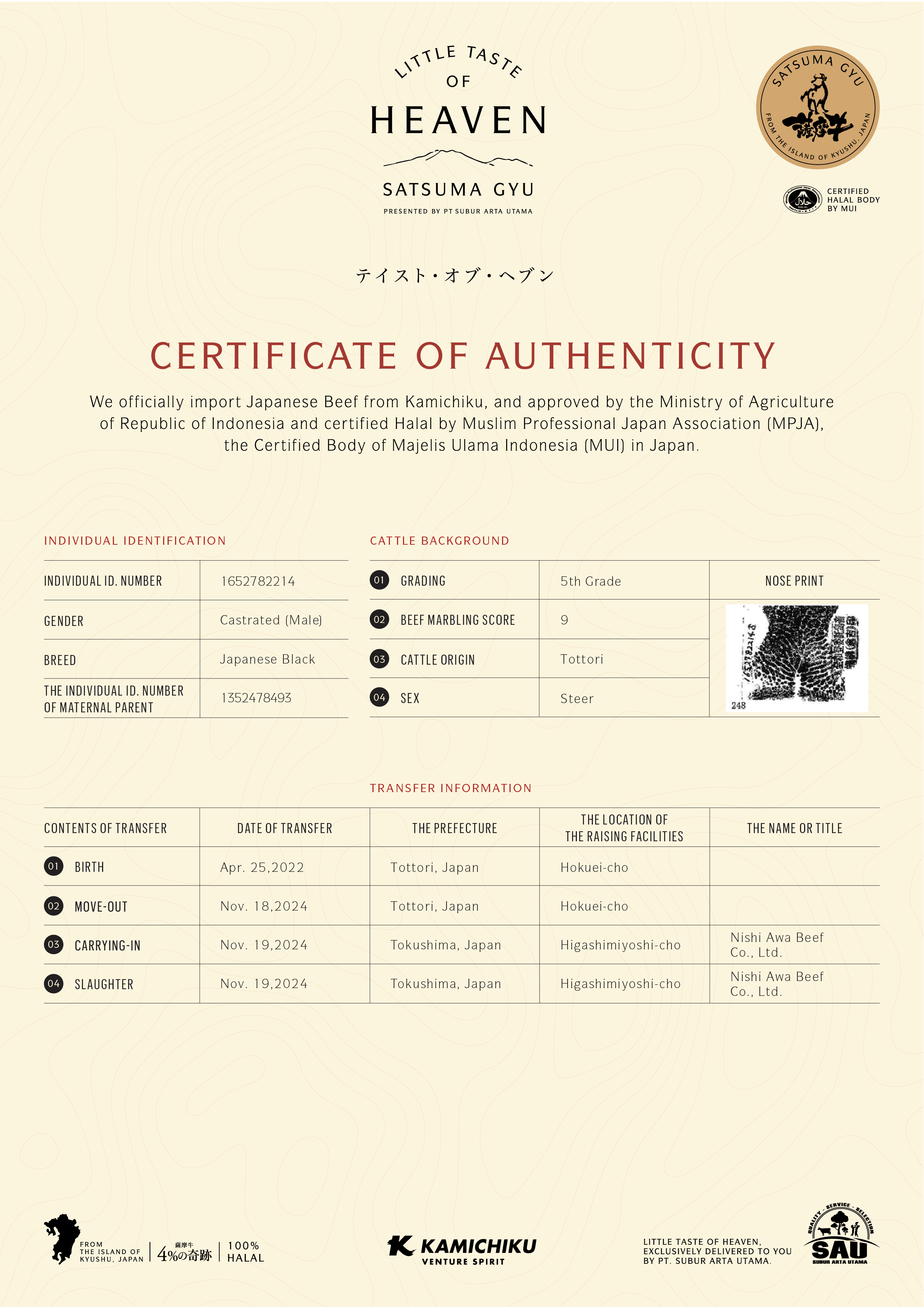 YOUR WAGYU IS REGISTERED AND CERTIFIED.