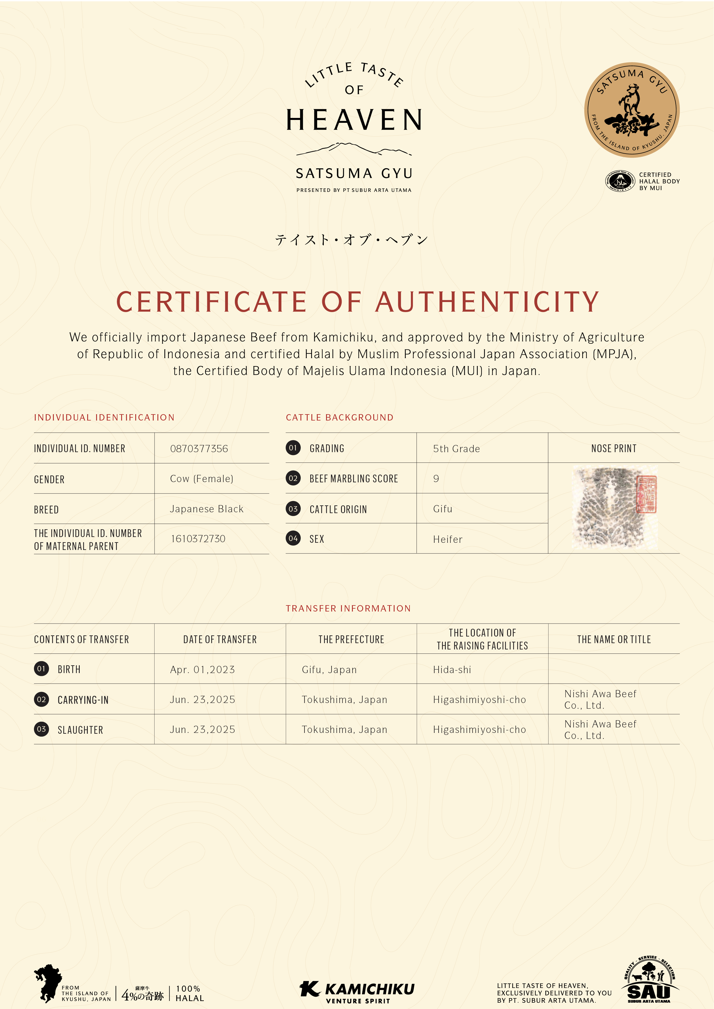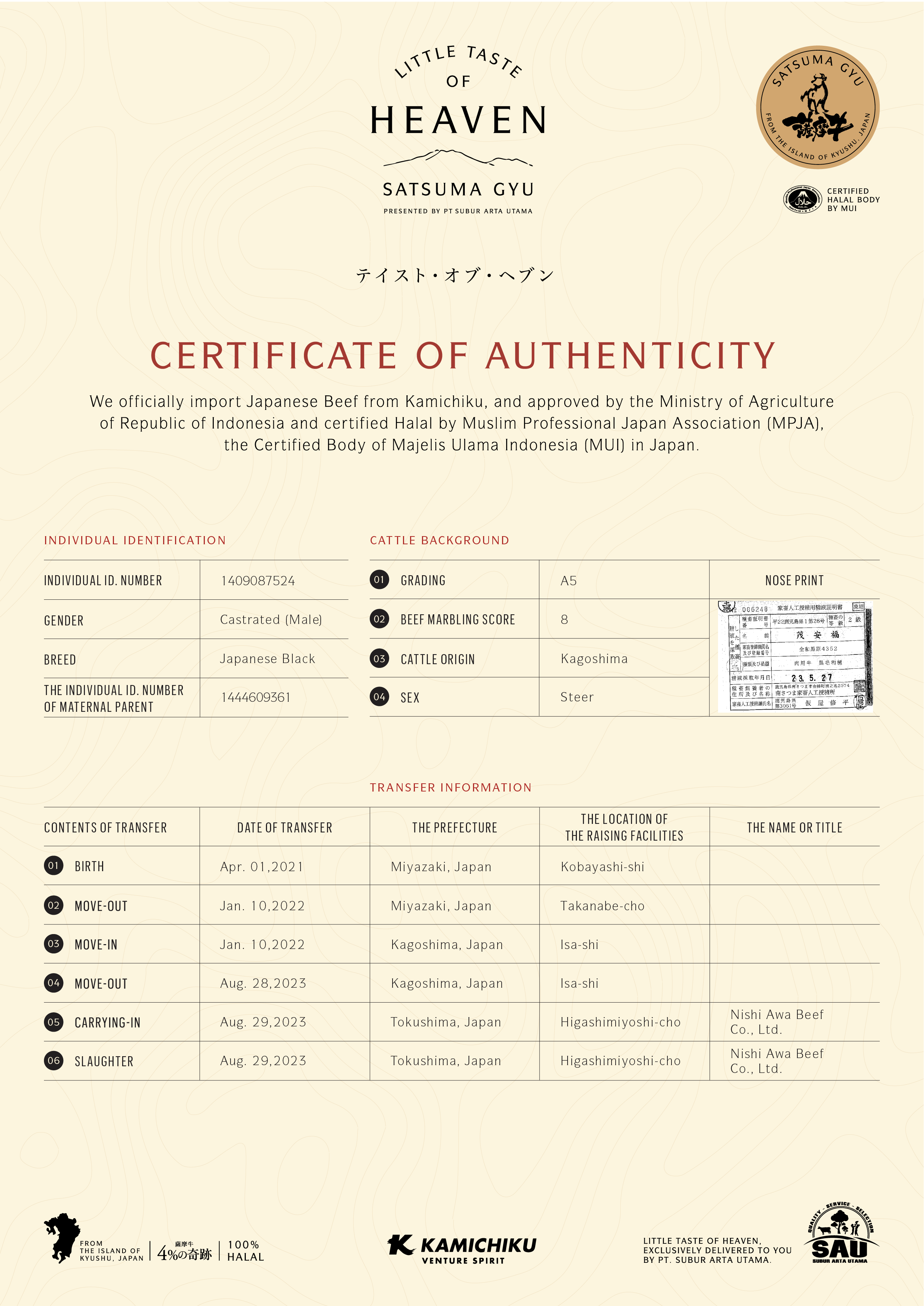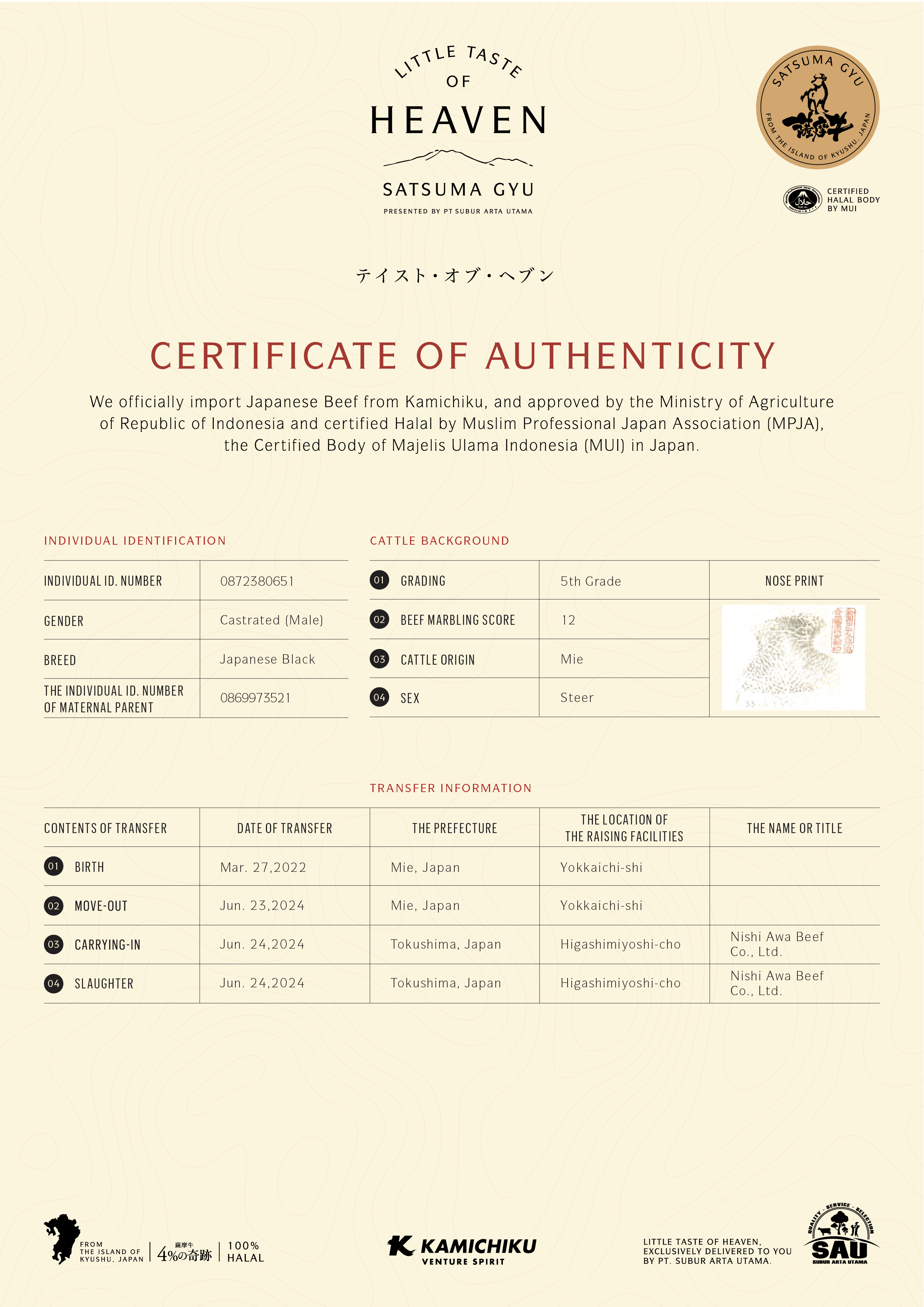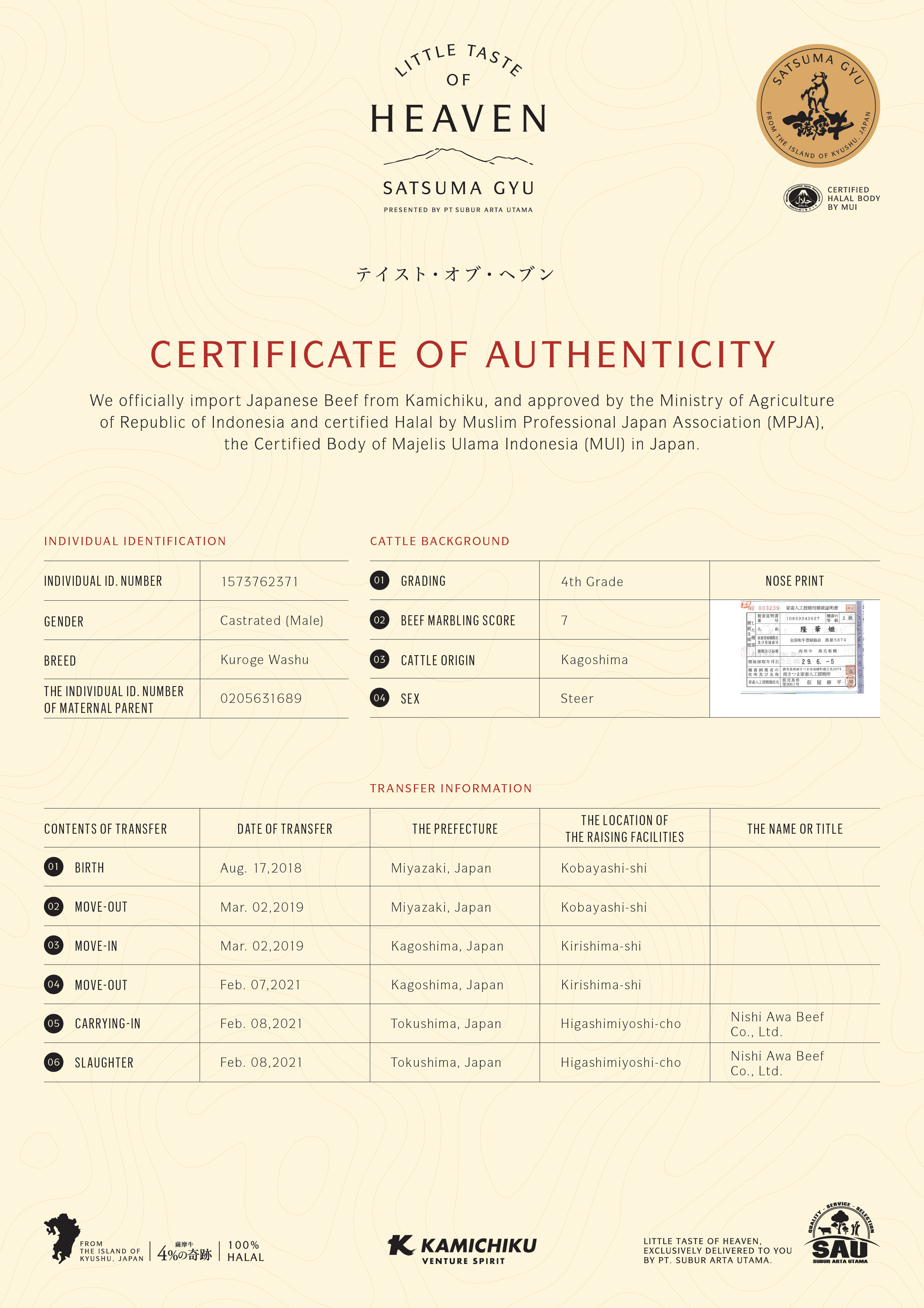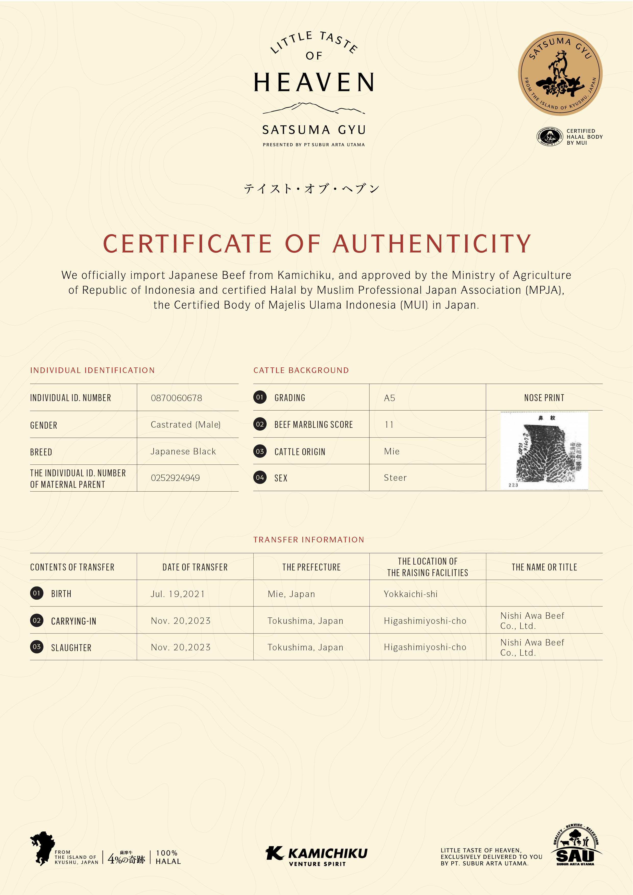 YOUR WAGYU IS REGISTERED AND CERTIFIED.