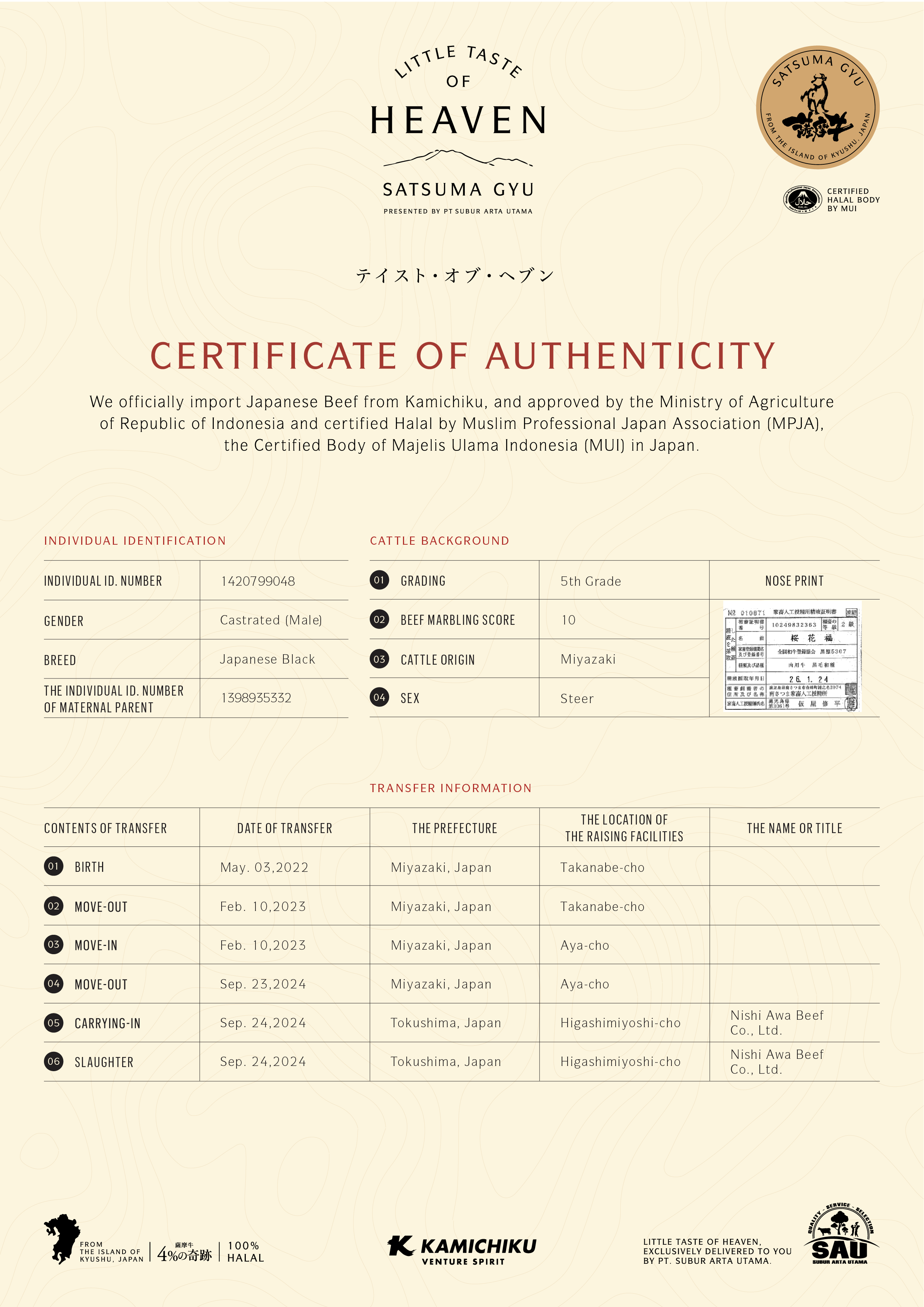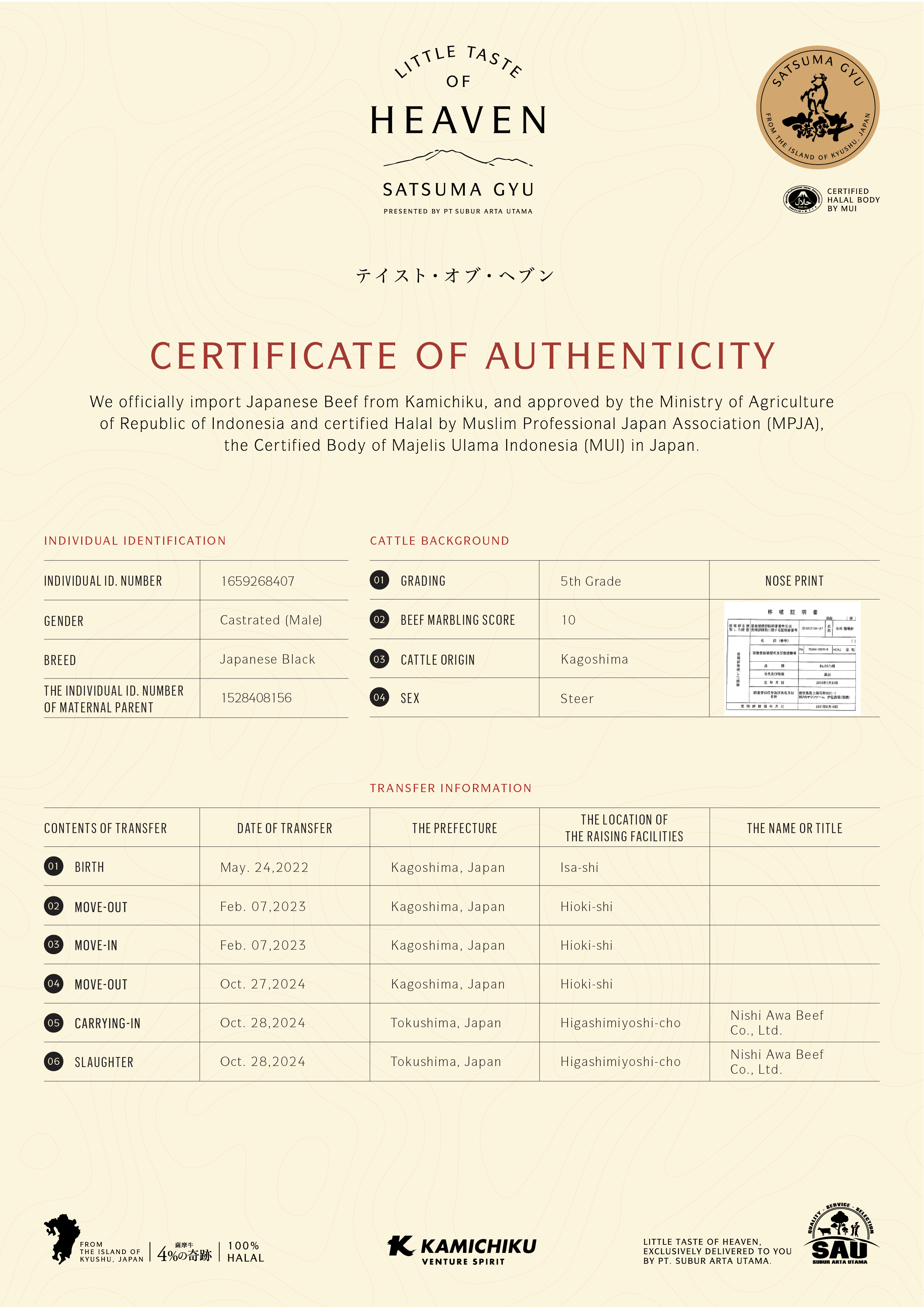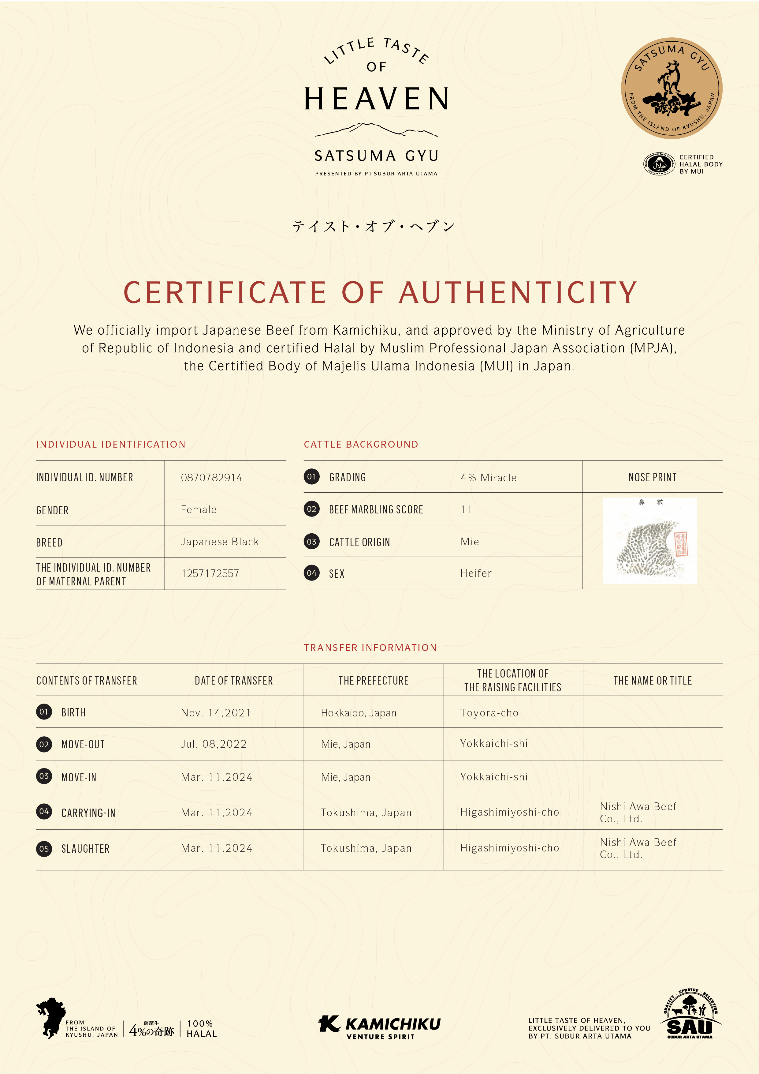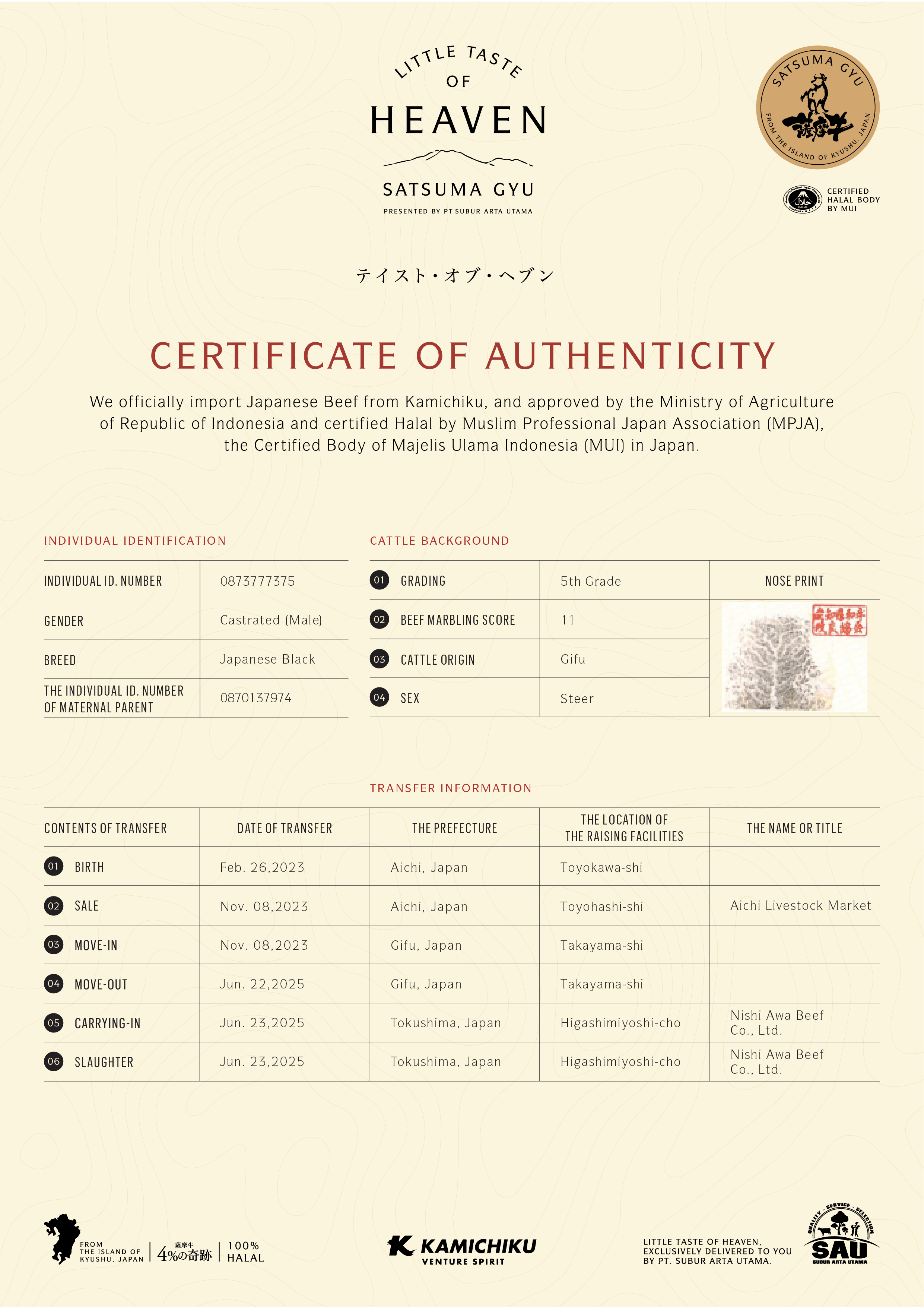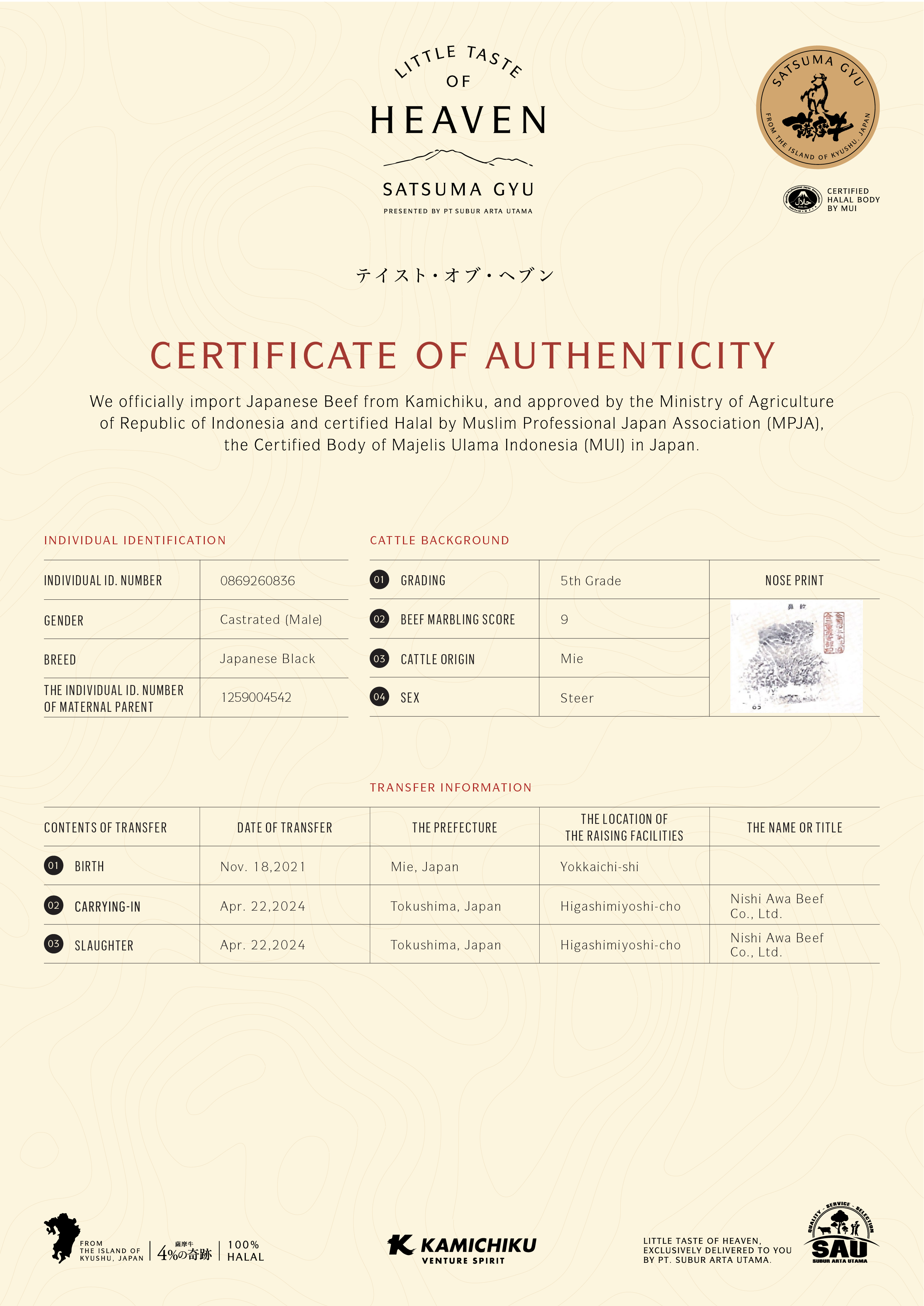 YOUR WAGYU IS REGISTERED AND CERTIFIED.