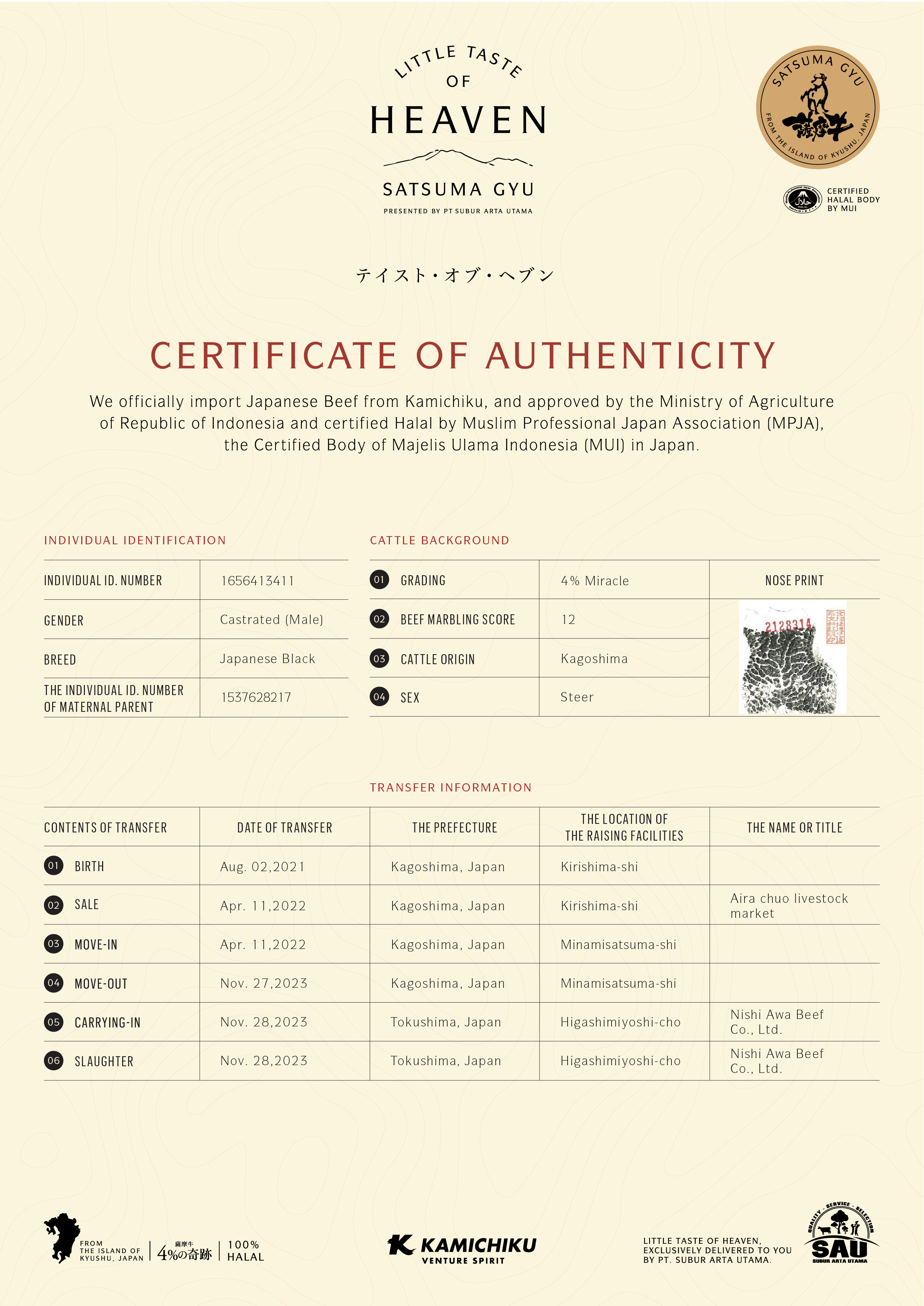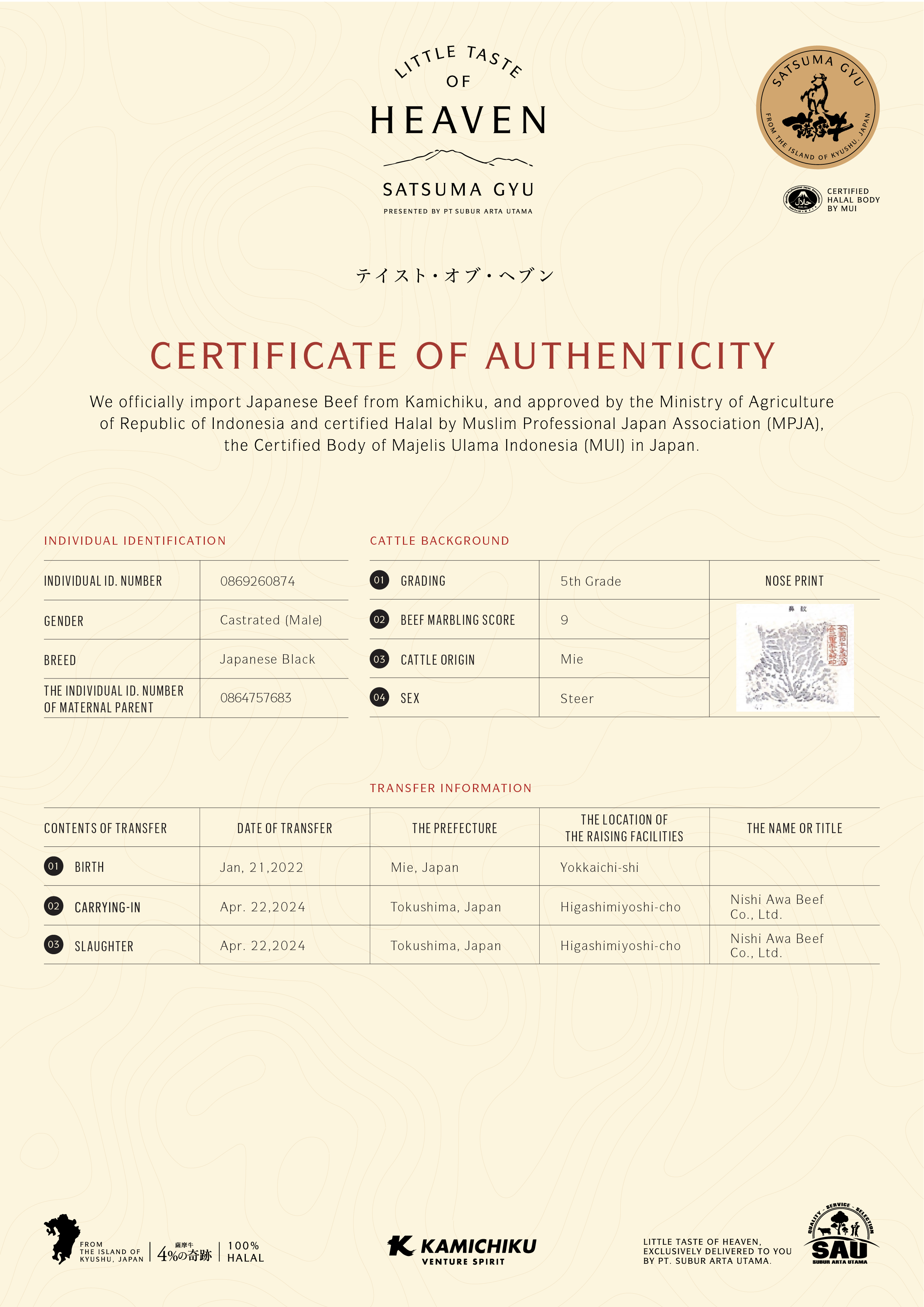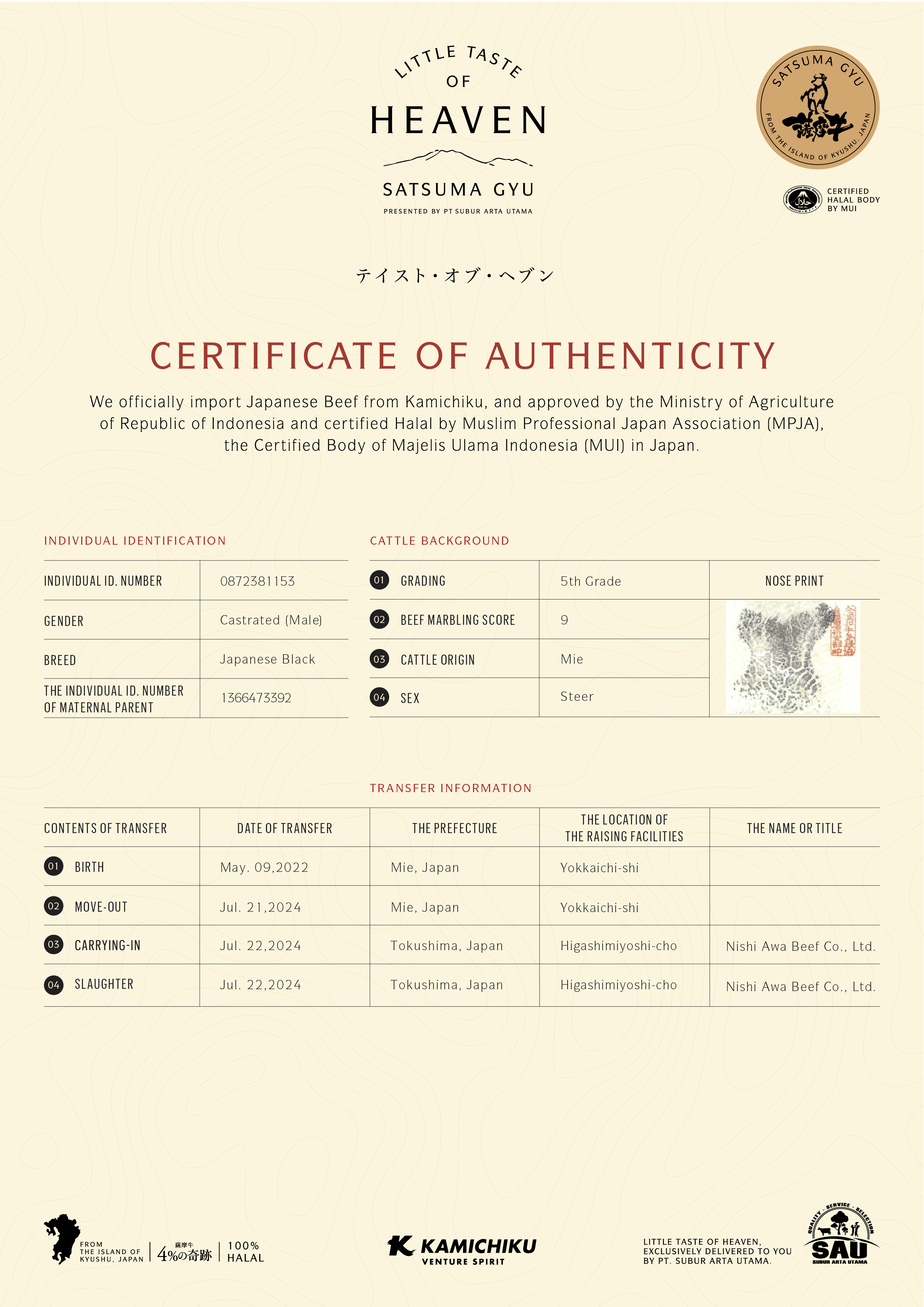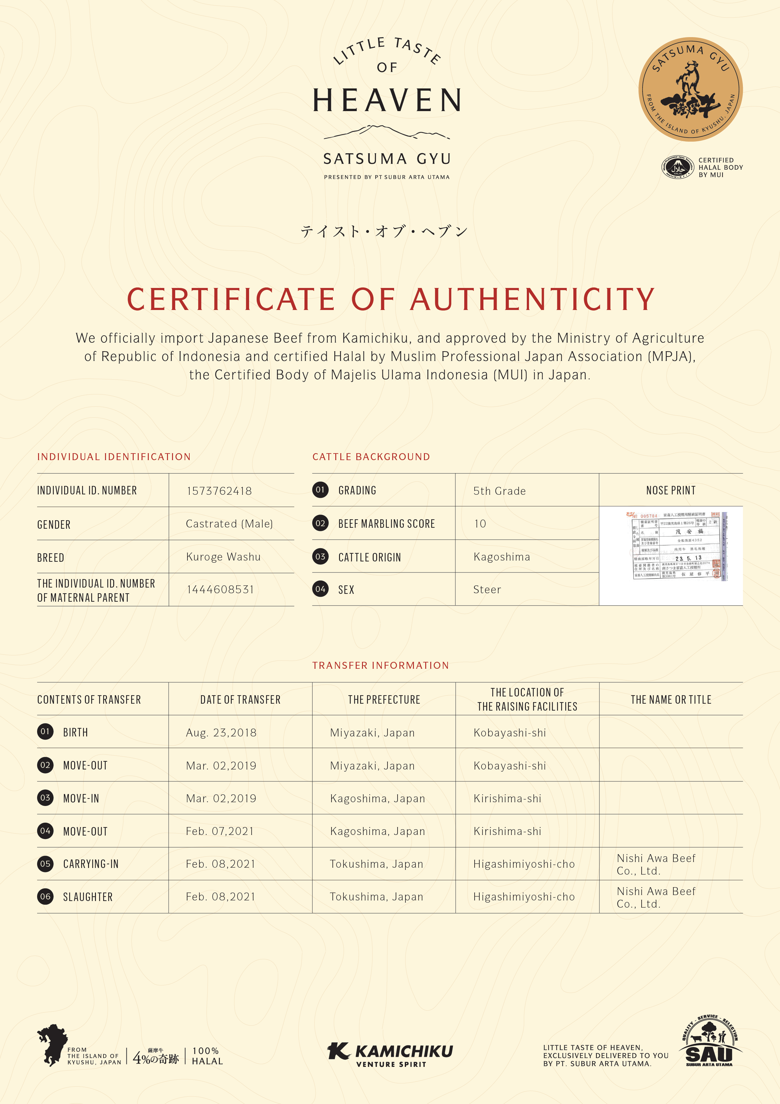 YOUR WAGYU IS REGISTERED AND CERTIFIED.