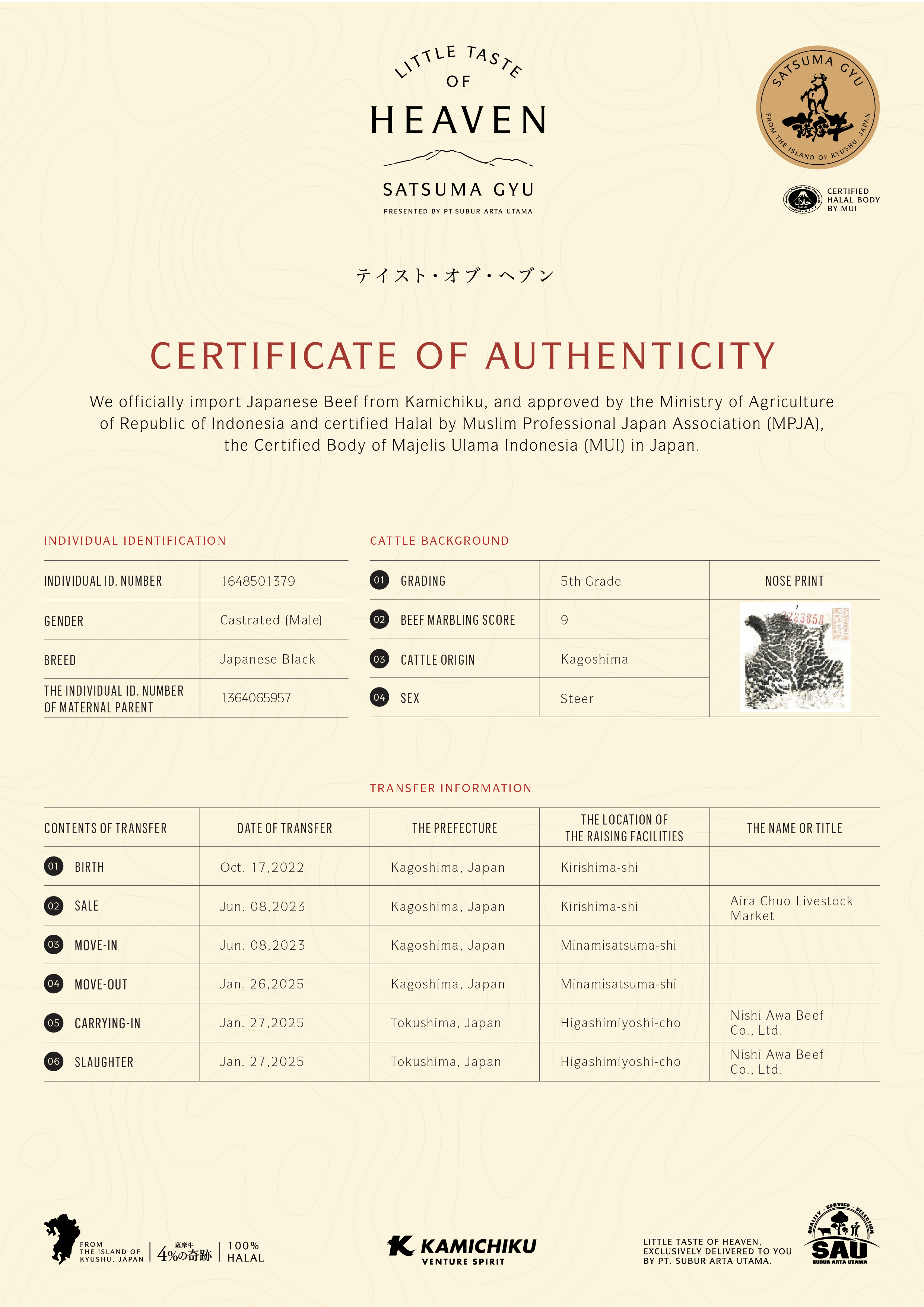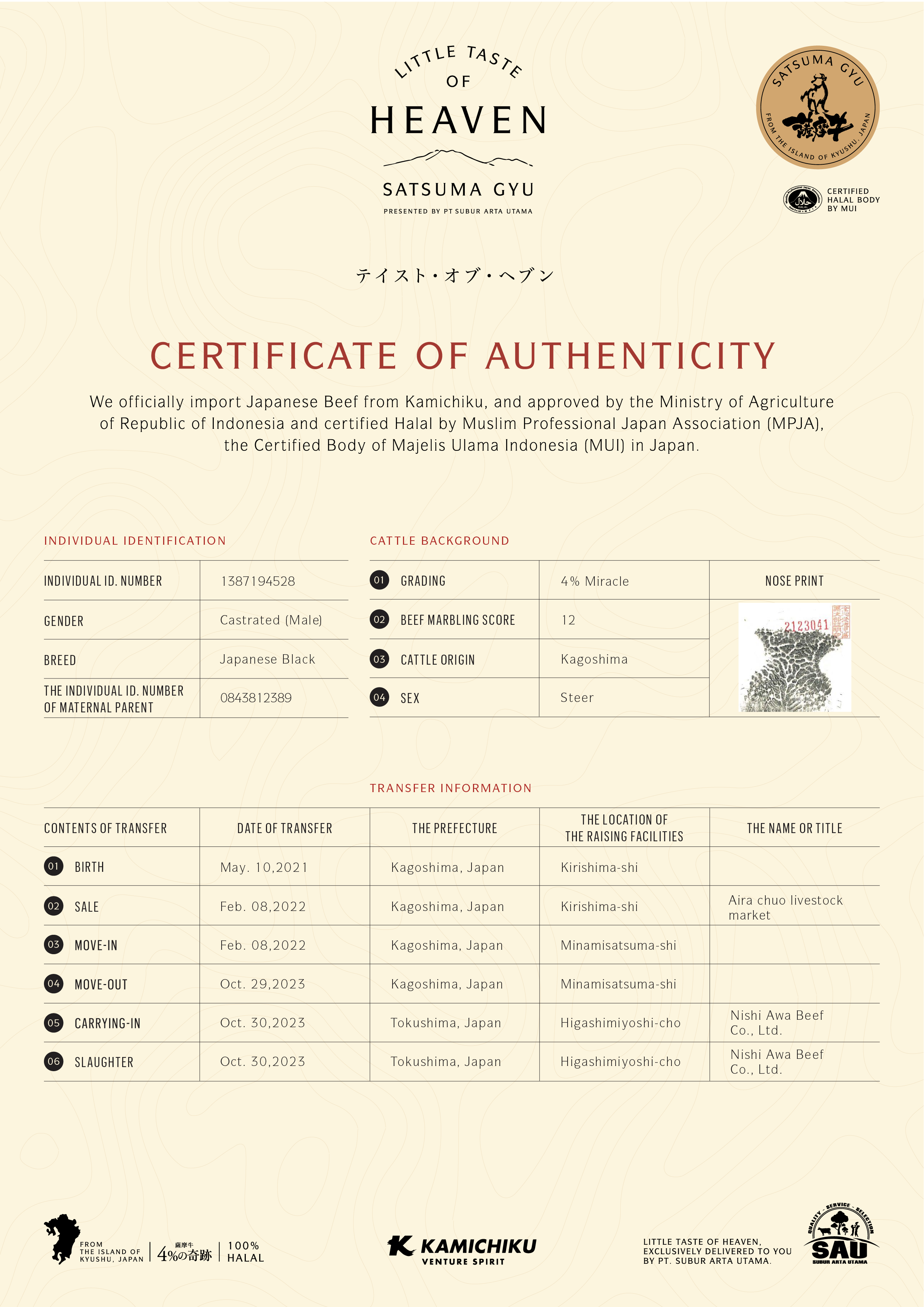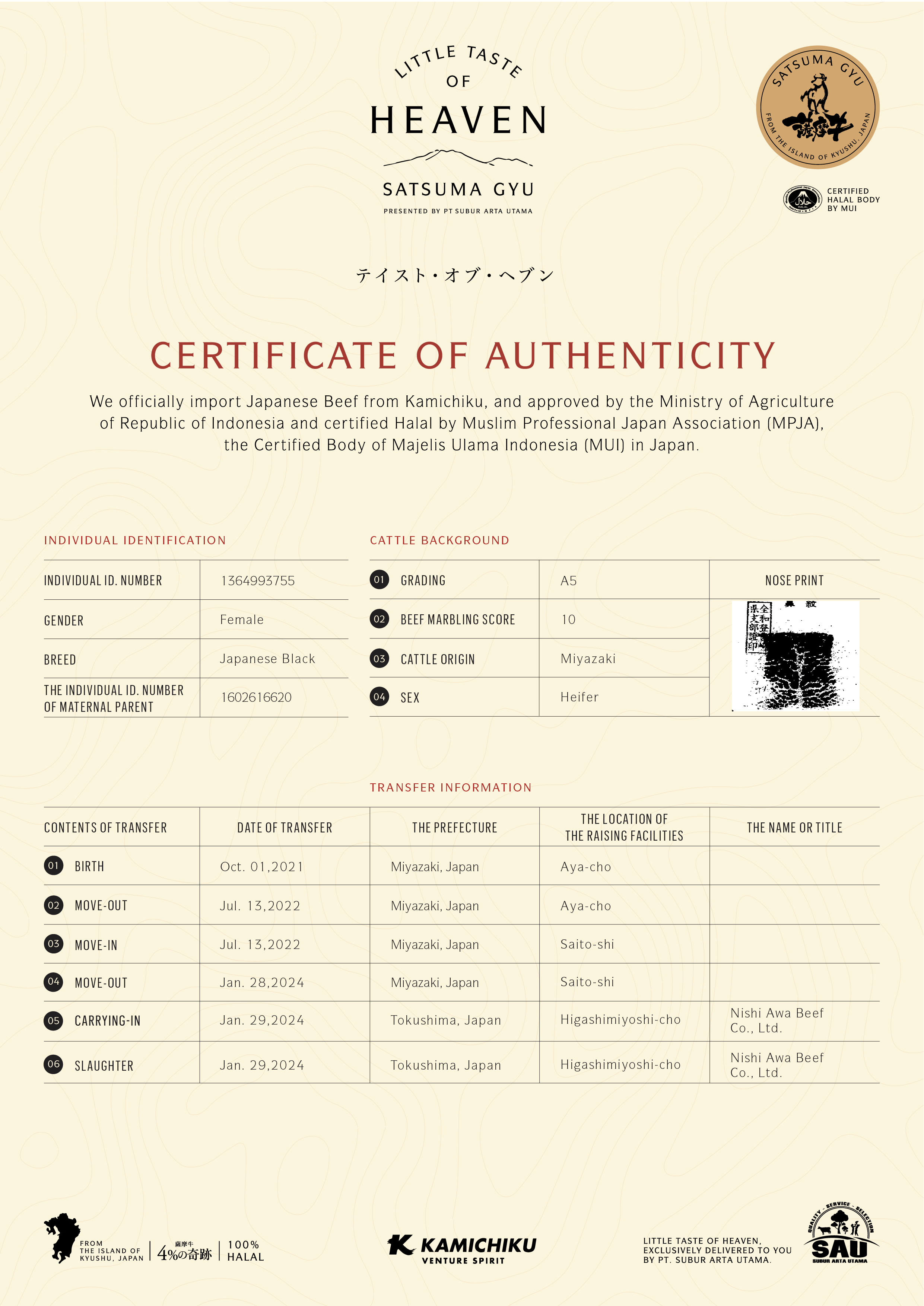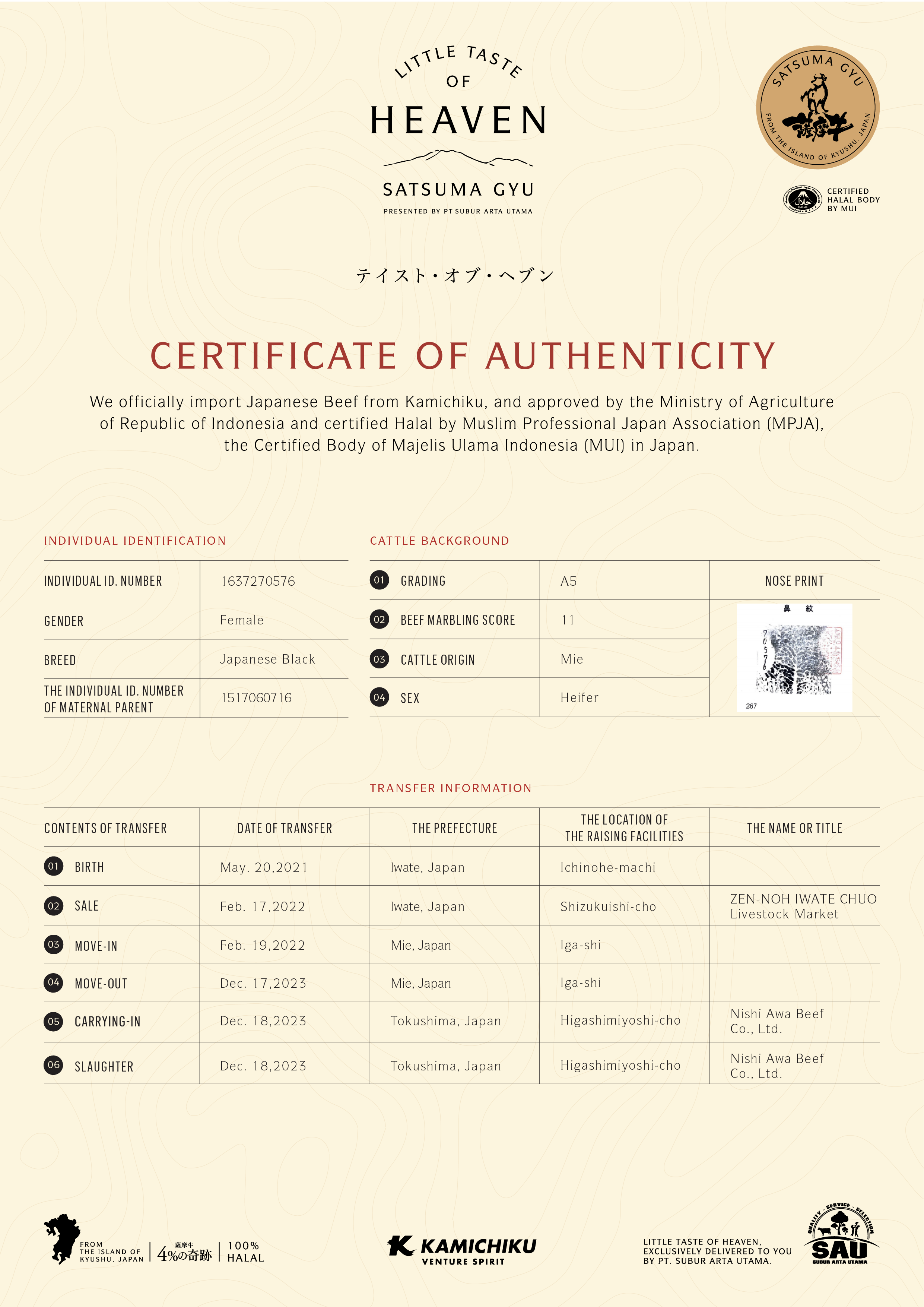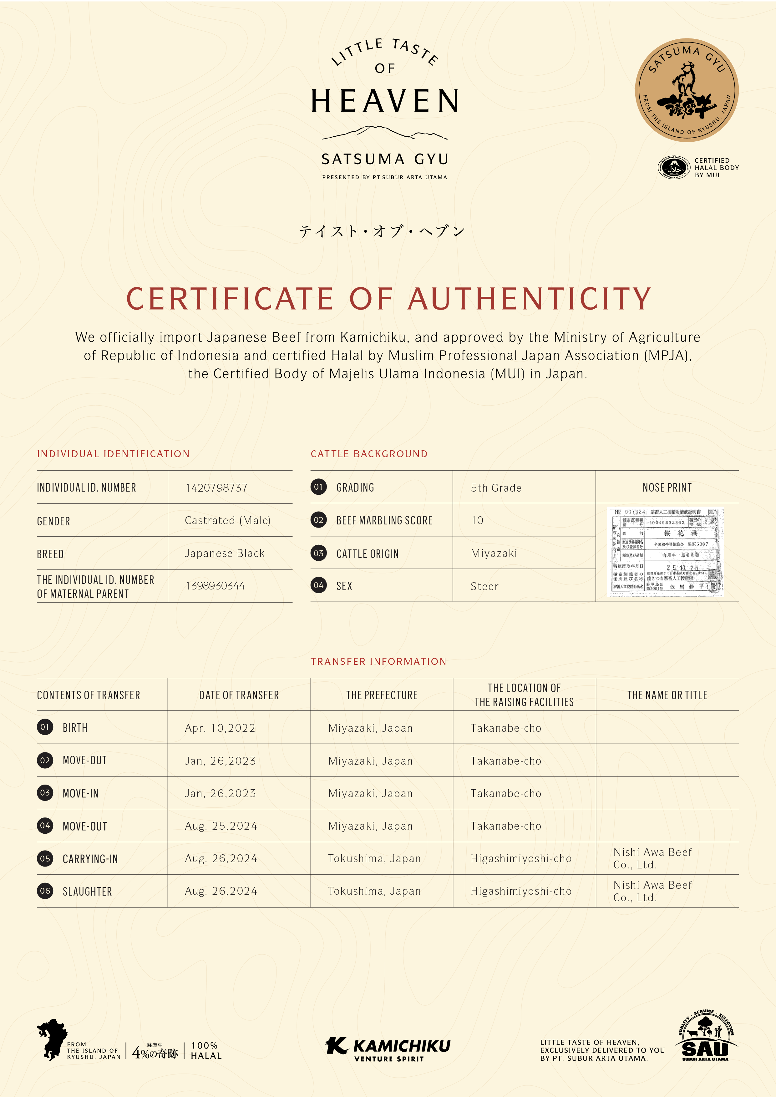 YOUR WAGYU IS REGISTERED AND CERTIFIED.